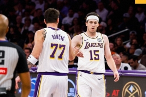 赛后,湖人发布本场赢球海报,封面为东契奇和里夫斯击掌瞬间。