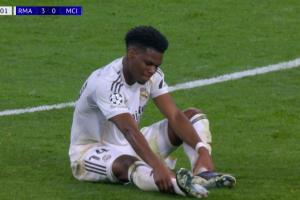 体育资讯03月12日讯 皇马vs曼城,琼阿梅尼第64分钟受伤,在场边接受治疗,随后暂时回到了比赛!