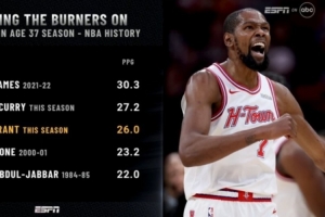史上37岁赛季场均得分:22年詹姆斯30.3分第1 本季库里&KD分列23